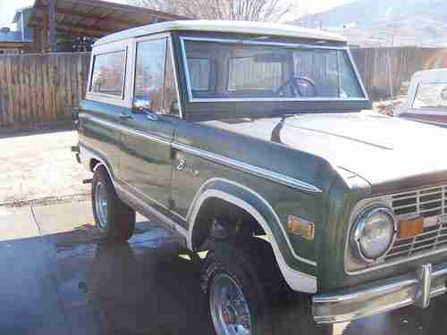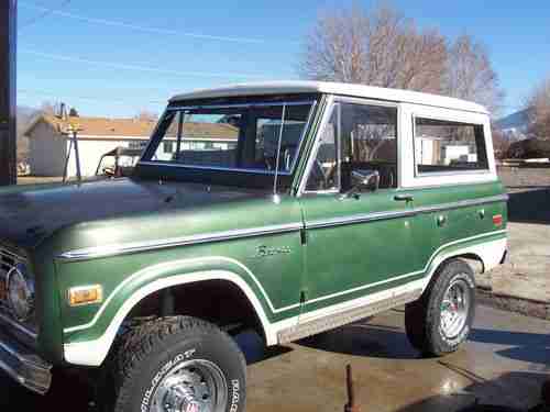 I'm selling my 1974 ford Bronco it is equipped with a C4 automatic transmission and a 302 V8, it has power steering and power brakes it also has a dealer install A/C system that needs to be charged up. The speed o shows 58,500 miles I be leave this to be original because of how nice this bronco is. It is uncut and still has the original paint on it. The seat covers and carpet have been replaced. The engine and transmission and 4 wheel drive all work good and no leaks. The body does have a few imperfection and the only rust is a few pin holes in the drivers floor and some minor surface rust where the original paint is getting thin it also has a new hood that is still in primer black. I do have the spare tire and rack for it and it also is in good working condition, It has four new tires and a 2 inch lift kit installed. I'm only sell this great bronco because I need some funds to finish another bronco I'm restoring.