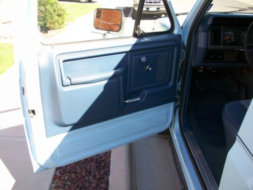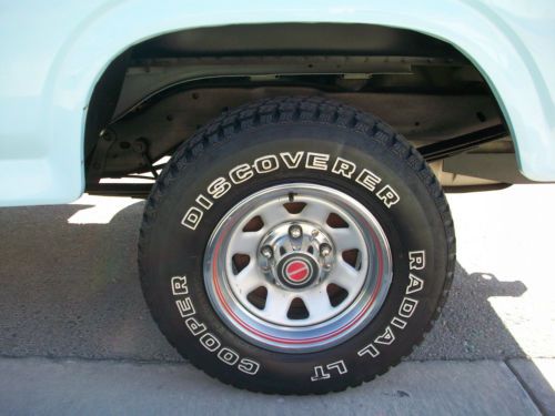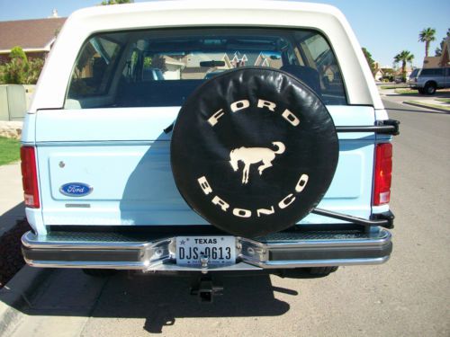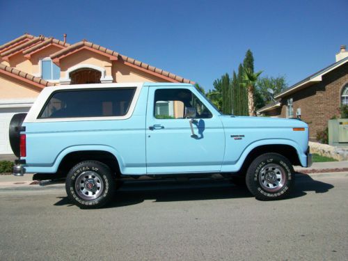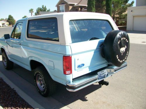 Up for sale is a 1986 ford bronco with a 302 fuel injected V8 this bronco is free from rust and is clean inside and out. It looks as good as it does in the pictures as it does in person. Interior has orginal dash which has no cracks orginal digital clock which works perfectly, orginal bench style seats with no rips or tears orginal factory casset radio with four speakers which all work ac system blows cold heater blows warm power rear window work perfectly orginal rubber floor from front to back is in awesome shape has factory installed cb radio from stratoline which works. Exterior has orginal paint light blue paint with normal ware along the front fenders with stone ships only one deep scratch is along the upper front passenger side fender this bronco is equipped with two spare tires and all 6 orginal matching rims with protctive covers on the two spare tires, those tires are orginal firestone with light ware on them all the rims are 15x7 tires on truck have plenty of tead on them. All glass is orginal except the front windshild has been replaced. lights grille mirrors are in awesome shape bumpers front and rear shine nice for the age. Drivetrain is all stock orginal exhaust orginal exhaust components this bronco is a true survivor motor drives and starts right up no issues transmission shifts perftecty 4x4 engages perfecty has warn manual hubs also included are the stock automatic locking 4x4 hubs previous owner has switched them out. only aftermarket items are a dash mat not pictured and the air deflector in the front. solid classic southwest truck. |