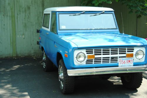 I have owned the Bronco for 2 years.It came from South Carolina It is a sound vehicle.It has a 302 v8 3 speed tranny 4 wheel drive.The engine runs strong it has new springs all around new bushings new shocks new tires new brake lines new brakes new power brakes and master cylinder new muffler new u-joints new front drive shaft new complete tune up the carburettor has a new kit in it Not sure of actual mileage . The top rattles a little ,the paint is not perfect but looks good it has not been cut the doors at the top need to be fitted better .It does not have power steering. If you have any questions you can reach me at 508-509-9032 I am selling the bronco because I have too many vehicles and need the room.This vehicle is listed locally and may be pulled at any time.All sales are final .A $500.00 deposit is require within 48 hours from the close of the auction.The vehicle must be removed and paid in full by cash or certified bank check within 7 day from the close of the auction. |