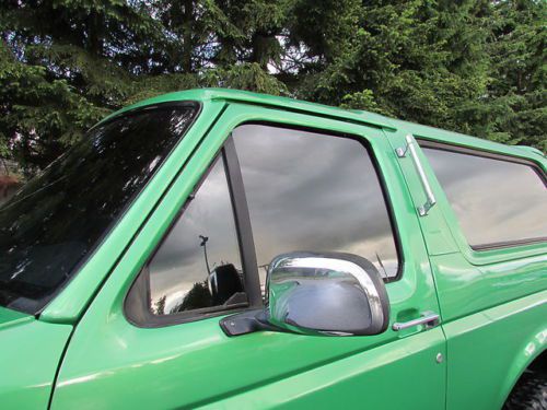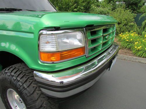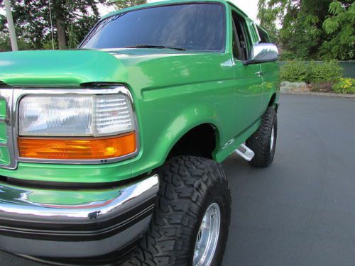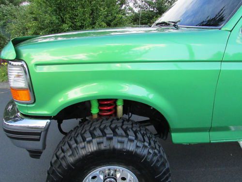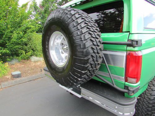 VERY CLEAN 1995 FORD BRONCO, RUST FREE BODY, OLDER CUSTOM PAINT JOB- STILL SHOWS VERY NICE. NEW SUSPENSION, NEW FRONT AND REAR 4.56 GEAR SETS, 35 SPLINE AXLE SHAFTS AS WELL AS LOCKERS.GOODYEAR 37" TIRES GOOD CONDITION HALF LIFE LEFT PLENTY OF TREAD LEFT, FULL SPARE NEW WITH SAME STYLE RIM. OVERALL INTERIOR CONDITION ORIGINAL GOOD CONDITION. THE BRONCO IS IN GOOD RUNNING CONDITION -ENGINE AND TRANSMISSION RUN GREAT, AC IS DISCONNECTED NEVER USED WHEN OWNED- ALL THERE JUST UNPLUGGED UNDER THE HOOD. ANY OTHER QUESTIONS, PLEASE EMAIL AND I WILL RESPOND WITH ANSWER TO ANY QUESTIONS. THANK YOU.