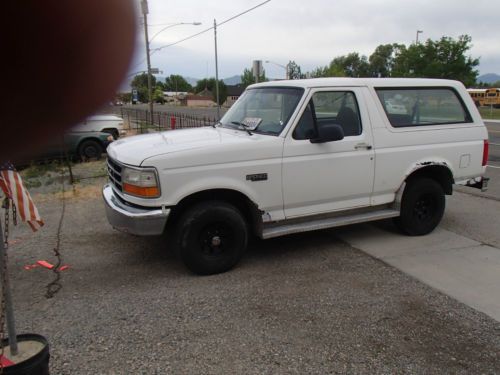 85,450 Actual Miles,1996 Bronco XL. No carpet, just factory rubber mats to hose off. No power windows, power seats, power locks, and all the rest of the options that seem to give up in the worst spot possible.