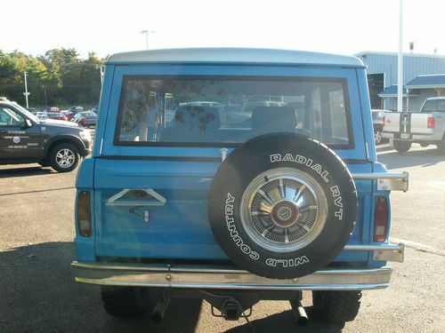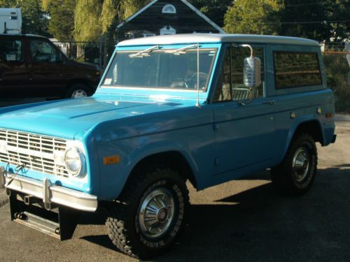 1974 Ford Bronco that runs great. The truck is equipped with a 302 V8 and is paired with a C4 Transmission. Equipped with a Dana 20 diff case, Dana 44 front and rear 4.11 ratio. 9 Inch Rear (Limited Slip), makes a great Off road vehicle. Truck has Cooper studded tires that have plenty of life. Buyer will also recieve set of four chrome rims and tires (pictured). Radio system has been updated with multi-disc player and Sony Speakers. 2 Passenger rear seat folds down and reclines, black cloth. Have list of invoices of upgrades and services that have been to vehicle (these will be passed on to next owner) Invoices include: dash cover, door panels, armrest, seat foam, vinyl seat covers, turn signal switch, neutral safety switch, radiator, upper door seals, ignition switch, leaf springs, lock cylinders, headers, limited slip carrier 28 spline, muffler, Ford dual exhaust kit, solonoid The truck did come with a plow. I have never used the plow, but previous owner designed plow specific for vehicle. Can not guarantee functionality of plow. I have pictures and can provide them at request. The plow will be included in sale. Buyer will be responsible for putting plow on vehicle or taking plow with transport company. Extras included: never been used 'Tom's Bronco Parts" Carpeted Floor Mats, 1966-1977 Chiltons Repair and Tune Up Guide, Four Chrome Rims and Tires Please do not hesitate to contact me with any questions. Truck has been well cared for and runs great To view photos of plow, roof racks, floor mats, and repair manual follow this link to photobucket http://s806.photobucket.com/user/cbarrett3/library/ |