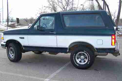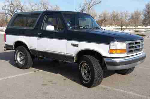 Here's Another NO RESERVE auction for a 1995 Ford Bronco, 4x4, Off Roader! Available from C&J Auto. Here's the best part. We are going to sell this truck at the end of the auction for whatever it brings.! I would classify this truck at Fair to Good overall Condition. It is not a show truck, but it's perfect to use as a great 4x4! Get your bids in early and don't miss out. This Bronco is going to sell, NO MATTER WHAT IT BRINGS! IMPORTANT: If you are new to Ebay and have less than 5 previous transactions completed, or have less than a 95% positive feedback rating, you MUST contact me before placing a bid. Either call first @ (970) 214-0979, or contact us through the upper right "ask seller a question" button on this listing. We welcome and certainly appreciate your business, but we absolutely need to know we are dealing with a legitimate buyer planning on following through on their purchase. By placing a bid on our vehicle, you are entering a legal binding contract to purchase the vehicle. This means if you are the high bidder at auctions end, you agree to purchase it, and you own it. (not inspect & think about it later). I have never been to an auction anywhere where this policy is any different. We have had a few people win top bid and experience buyers' remorse. Oh sorry, I changed my mind, wife won't let me have it, don't have the money, thought it was new, don't like the paint, etc.etc.etc. . ....Well, it doesn't work that way !?!?. Folks, the time to inspect is BEFORE you buy! Understand, We still owe the Auto auctions for these vehicles. It still costs us a week of our time answering questions and $$+ in ebay listing fees, -they do not refund us. We are a small mom and pop business and do not have the time, nor the extra money for those games. Be ABSOLUTELY sure you are able to follow through on your bid. We will take ALL legal actions necessary to protect our interests should it need to come down to that. I know this all sounds terrible, but unfortunately it must be said for the few that have ruined it for the rest of us. Thanks for understanding. Here's a 1995 Full sized Bronco that RUNS Excellent. This one has the 5.8L V8 and fires right up and sounds beautiful. No lifter noise, bearing noise, ticking, smoking,knocking,etc.... It still runs very strong. No tailpipe smoke of any color, hot or cold. The transmission shifts correctly through all the gears. The transfer case goes into 4 Hi and Low with a push of the dash buttons. I would not hesitate to drive the Bronco coast to coast. The body does have all the usual scuffs,dings and dents, that should be expected, But.... the truck is RUST FREE. The Floor boards are completely rust free. NOTE: This is a used 4x4 Bronco. It is NOT a show truck. I think it would be perfect to enjoy off road or take it through some deep snow. Maybe hang a new snowplow off of or keep around your property for all those chores. It would also be perfect for Farm and Ranch use. The possibilities are endless.The paint looks O.K. to fair. Again, there are all the cosmetic blemishes throughout, but nothing completely horrible. There are 24 pictures of this Bronco that should cover most of the questions or issues. There are no foul odors of any kind inside. The seats are in fair to OK condition. They show normal expected wear from use and getting in and out. They are not torn up. The Bronco has carpet, and it's in surprisingly good shape. There is NO check engine, or any other dash warning lights on. The brakes stop excellent like they should. The underside is about as rust free as it gets. Interior wise, the front windows roll up and down, the rear power window only goes down about 4 inches and can be rolled back up. Not sure what's wrong. Radio sounds good, Horn works, lights all work, heater works, Air conditioning works, gauges all seem to work correctly. From what I can see underneath and on top, it looks all stock. No power modifications and the catalytic convertor is in place. The tailpipe behind the rear tire will be replaced with a new one before delivery. As nice as this old 95 Bronco is, it obviously isn't brand new, and it's definetely not showroom perfect. It's pretty nice, though. Especially for the mileage and year. The tires are in BRAND NEW condition. The wheels are equally as new and nice.The steering doeesn't pull or wander, or shimmy. All emissions equipment is in place and un-tampered with as far as I can tell. The glass is all very good. Since I am only human, there's a good chance I've missed some small or even large stuff. If there's something specific important to you that hasn't been addressed, please contact me and I'll try and get you an answer. My name is Chris, my cell # is (970)214-0979. . We have sold Many, Many trucks here on Ebay and have maintained an exceptional feedback rating. Understand we are not trying to hide anything and WANT you to know EXACTLY what it is that you are bidding on. As you can imagine, with any used vehicle, it is nearly impossible to cover every last square inch in detail with this brief listing description. I'm absolutely sure the vehicle will need some kind of minor work or maintenance (just like any other used vehicle out there). Please be realistic on your expectations. If there is something important to you that has not been covered, PLEASE ASK questions and I will try to get you the answer A.S.A.P. We have maintained an exceptionally good positive feedback rating here on Ebay since 2001. We are not going anywhere, and are in this business for the long haul. PLEASE review the pictures carefully, as they are invaluable to show possible cosmetic things you may want to know about. .........PLEASE feel free to ask questions! This is a used vehicle being offered by a licensed Colorado dealer. All used vehicles are sold As-Is / No warranty. Any applicable tax, title, and registration costs are not included in the sale price. If you are a resident in the State of Colorado, a Dealer Handling fee of $99 wi