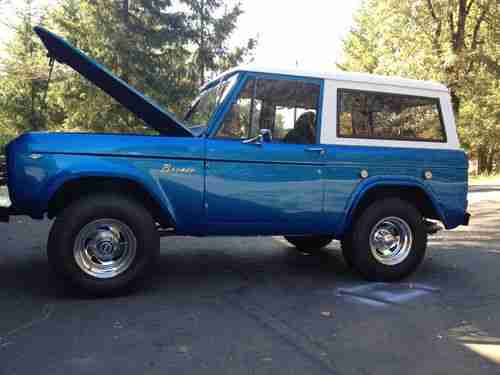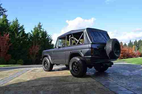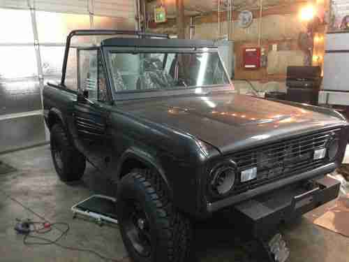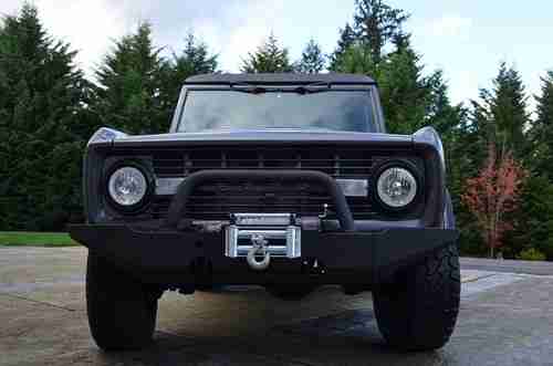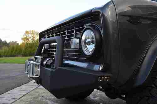 This bronco was restored and always garage maintained by previous owner who had bronco for almost 20 years. I purchased vehicle the vehicle in November 2012 and it was completely restored again from the ground up by Urban Gears(view video of this bronco and pics on www.rideUG.com). The original 289 was recently rebuilt with approximately 15,000 miles on it, engine bay is immaculate, auto transmission, power steering, power brakes, new gunmetal gray paint, new high back seats and new dual action folding rear seat, new black carpet throughout, rhino lined tub, new locking console, new Kenwood Pandora stereo with IPOD, bluetooth USB capability, 4 Focal speakers and 2 Focal tweeters, new stainless door plating, new sun visors, new shocks, new set of 5 Pro Comp 7089 wheels with 5 new Mickey Thompson tires, new custom built bumper with Smittybuilt XRC 8000 winch, new HID headlight and LED halos, new weather stripping throughout, complete body rust seal, complete under coating, new steering wheel, new interior qtr panel inserts, new three point seat belts, new front signals with LED, new tail light lenses, new dash knobs, new window door felts, new sun visors, new fender flares, new air-conditioning unit, new soft top with tinted windows, tinted windows, new roll bar. This bronco and is as nice as you will find! I have represented this vehicle to the best of my knowledge and it is being sold "as is" with "no warranty".