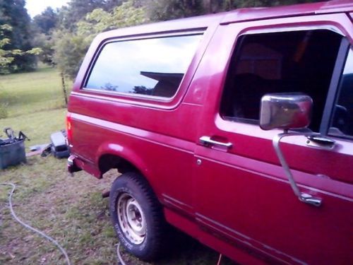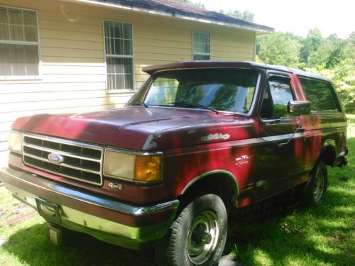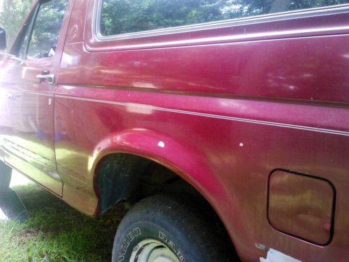1991 Ford Bronco Silver Anniversary Edition Florida Truck. Solid body panels, frame. Ready for light restoration! No rust on fenders, doors, quarter panel or underbody. It's a southern truck. Interior carpet dash, and door panels very good condition. Original bucket seats and rear bench need reupholstering. I have them (only 12 pics) frames are good, foam decent. Give me a call if you want pics of seats. Steve 352-277-6073. Tailgate has minor rust on bottom section. Truck is located in Ocala FLA. Needs some work but a solid rust free classic for cheap! -5.8 Liter engine runs good - C 6 trans has a leak, needs to be sealed up - electric windows/door locks all work - Push button 4X4 original working condition |
