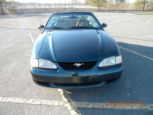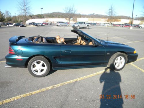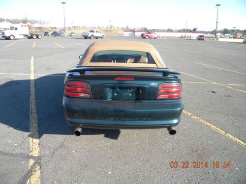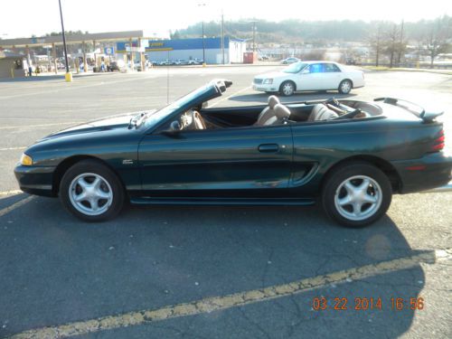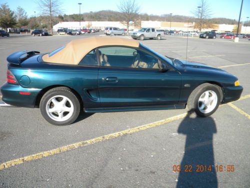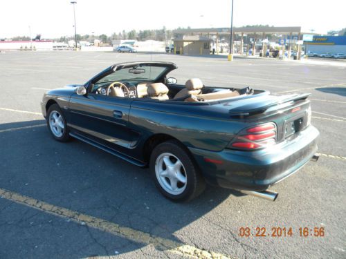 94 GT MUSTANG CONVERTIBLE WITH 5.0 5 SPEED MANUAL TRANSMISSION. TRICK FLOW INTAKE AND MAGNA FLOW DUAL EXHAUST. CONVERTIBLE TOP HAS JUST BEEN REPLACED. 4 NEW FIRESTONE FIREHAWK TIRES. NEW RADIO WITH CD PLAYER. MECHANICALLY THE CAR RUNS AND DRIVES EXCELLENT WITH NO ISSUES. COSMETICALLY THE CAR HAS WEAR ON THE INTERIOR PARTICILARLY ON THE DRIVER SEAT AND EXTERIOR HAS SCRATCHES ALTHOUGH THERE IS ONLY ONE DING ON THE DRIVER SIDE REAR QUARTER PANEL. WITH JUST A LITTLE WORK THIS CAR WOULD MAKE AN EXCELLENT DAILY DRIVER OR WITH A LITTLE MORE WORK WOULD MAKE AN EXCELLENT SHOW CAR.