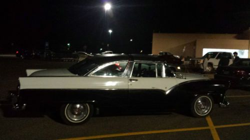 1955 Ford Crown Victoria. This car is a real pleasure to drive and gets a lot of attention when we take it cruising. It is an older restoration and looks great from 30 feet. It has rust starting in the left lower 1/4 panel. Drivers front floor pan needs work. Rust in a few other places starting to pop up under paint. Nothing very bad but it does need repair. It has a Chevrolet 350 with a 350 turbo trans. Ford 9" rear end. It has a vintage a/c unit but it needs charged. Tilt steering column from Chevrolet. Rack and pinion steering and power brakes. The paint is in decent shape for a driver but needs restoration to be a show car. The interior is decent for a driver but also needs restoration to be a show car. It runs very strong and sounds great. Drives great and stops well. It is a blast to drive and gets tons of looks. The chrome and stainless is all there and looks pretty good. It would be a very easy restoration if you want a winter project. You don't see these cars in this shape very often for the money. The car is located in Guymon, Oklahoma. I can send you more pics if you are interested. My cell is 580 461-2460. DO NOT email me as I hardly ever check it.