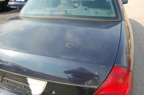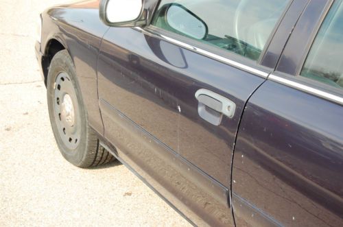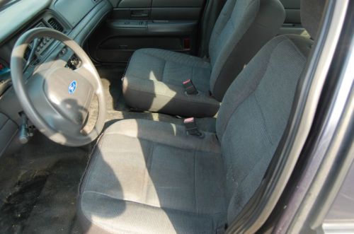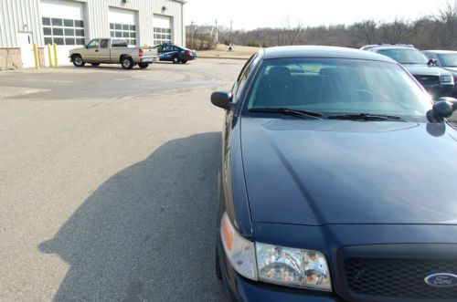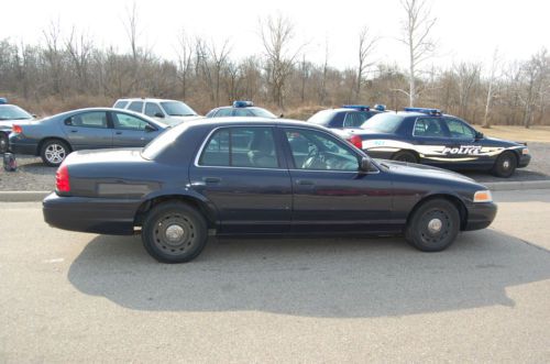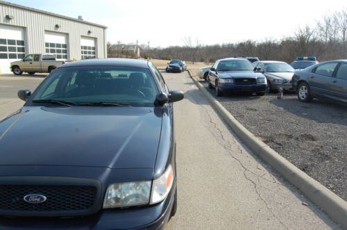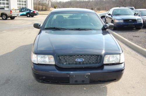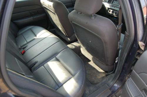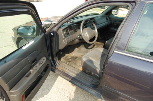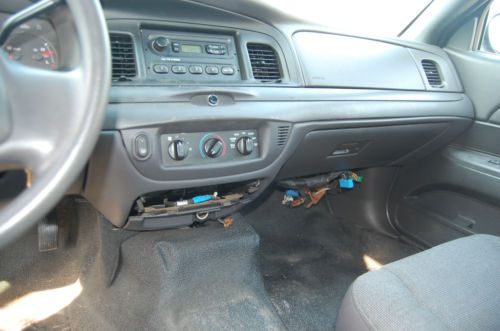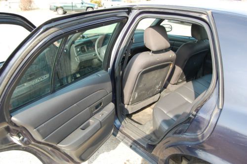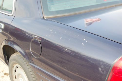 Up for auction is a Blue 2003 Ford Crown Victoria Police Interceptor. This car was used as a police car and has 112273 miles on it. There is some wear and tear in the interior as would be normal for a police car at this age. the car starts, runs, and drives. There are some scratches and small dents to the exterior and paint. the rear windows are disabled and the rear door locks are disabled. All of the decals have obviouslt been removed from the vehicle. the rear seat is in like new condition as it was removed and a plastic insert was used during it's service life. This vehicle was a fleet vehicle and was serviced at regular intervals by our fleet mechanics, including oil changes every 3000 miles.
