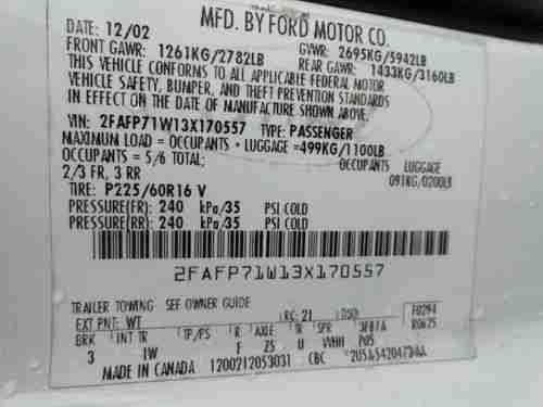 2003 ford crown victoria white p71 police interceptor 4dr car 104k miles(US $3,399.95)