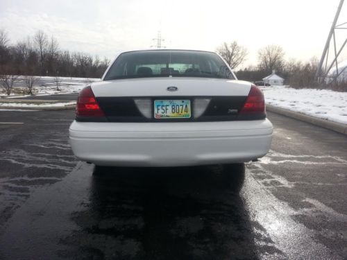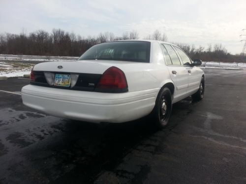 2009 Ford Crown Victoria Police Interceptor White - clean and shiny - NO rust Clean carfax, private, only one private owner. Runs perfect! ice cold a/c - super hot heat, transmission perfect - engine perfect, read on.... THIS IS A NO RESERVE AUCTION! HIGHEST BIDDER TAKES IT HOME! EXTERIOR Black grille with heavy duty push bumper Conventional full-size spare tire & wheel (NOT IN PICTURE) P235/55R17 Goodyear RSA Pursuit Tires 50% or above tread Steel hub caps Dual black fold-away pwr remote-control HEATED mirrors HD 17" x 7.5" steel wheels INTERIOR Pwr distribution connector for aftermarket police equipment Driver-side footrest Removable headliner for high intensity dome lamp Plastic rear bench seat w/o center armrest -inc: 2-way head restraints Analog/digital gauge cluster HD rubber floor covering Tilt steering wheel Lockable illuminated glove box Dual ashtray-mounted cupholders Pwr windows w/driver-side express down Rear pwr access point -inc: pwr junction box providing pwr to trunk-mounted equipment Cloth reclining front bucket seats Driver seat power lumbar adjust Pwr door locks Dual beam map lights Color-keyed front/rear scuff plates Front door map pockets Cloth covered sun visors Rear floor-mounted heat ducts Power adjustable pedals Engine idle meter Air conditioning Rear window defroster Rear window bars not included Electronic 140-MPH speedometer MECHANICAL Coil on plug distributorless ignition system Front/rear stabilizer bars Battery saver turns lights off after 30-minutes Rear wheel drive Easy-access fuse panel 4-speed automatic transmission w/OD High-output 200-amp generator (132-amps at idle) -inc: integrated electronic voltage regulator Dual stainless steel exhaust system Watts linkage rear suspension Limited-slip differential SLA front suspension Unique police vehicle air induction system HD 78-amp/hr (750 CCA) maintenance-free battery HD frame & suspension Pwr 4-wheel anti-lock disc brakes Engine oil cooler Aluminum drive shaft Gas cylinder hood assists Fail safe engine cooling Nitrogen-pressurized monotube HD shock absorbers Manual parking brake release 3.55 rear axle ratio Transmission oil-to-air oil cooler 4.6L SEFI OHC FFV V8 california emissions not required Pwr steering oil cooler Variable assist rack & pinion pwr steering SAFETY Brake shift interlock Rear door child safety latches Dual note horn Front dual-stage air bags w/occupant sensors 3-point active safety belts w/front pretensioners Tire pressure monitoring system Side door intrusion beams Emergency interior trunk release Driver & front passenger side airbags EMERGENCY EQUIPMENT Fire Suppresion System UNITY driver search light needs new bulb Police trunk pack insert As per eBay policy: ALL EMERGENCY EQUIPMENT HAS BEEN REMOVED Goodyear RSA ($375.00 EACH!) New Brakes and oil Change less than 1200 miles ago. I am currently driving this car every day, so the mileage is not exact. I have owned p71 crown vics for the last 10 years and if you know these, you know they are bulletproof. This car was adult driven, never abused. I put on the last 60,000 Miles over the last 18 months and this vehicle is 100%. You will not be dissapointed about any part of this vehicle. It does not get more real than this. Vehicle is being sold as is. No warrantee or guarantee is implied or expressed. Local pickup only. Vehicle is for sale locally, and seller reserves the right to end this auction early if vehicle is no longer available. Please don't waste my time and only bid if you have the funds available. Brothers in law enforcement, EMS, Fire, always welcome. |