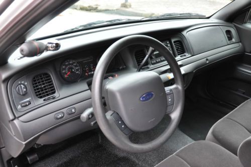 You are viewing an absolutely beautiful, very low-mileage, low idle hours, always unmarked, loaded 2010 Ford Crown Victoria Police Interceptor with the coveted "Street Appearance Package". Recently out of service from United States Federal Government, Federal Bureau of Investigation in Virginia, where it was assigned to one agent for it's entire life, with only 14,749 actual, documented miles on it. This is a beautiful example of a very rare, hard to find car in a classic and desirable color. The original finish is absolutely beautiful and this vehicle has an absolutely spotless Carfax report. It has never been involved in any accidents and has never had any paintwork or damage repaired. This unit has never had a light bar or decals installed anywhere. It has never been in regular police service. This unit includes all of the options you would expect...traction control, power heated mirrors, power trunk release, power adjustable pedals, factory auxiliary police dome lamp, factory AM/FM/CD stereo, optional side airbags, cruise control, power cloth front and rear velour split-bench seating w/dual fold-down center armrests and a heavy-duty, 8.8" 3.27 ratio rear differential. These items, of course, are just the beginning of the list of equipment on this car. In my years of buying and selling police vehicles, I have had very few cars that come close to the condition of these units, they are extremely well maintained, actually over-maintained, and typically need no repairs. This was a one-driver car, assigned to one federal agent throughout the entire life of the car. For those of you who know, that makes all of the difference in the world when it comes to how the cars are maintained and treated. It has NEVER been smoked in, looks as close to new as you will find and has virtually zero wear on the interior, even on the seating. The rear seat appears to have never been used. All of the factory manuals are included with the vehicle, and are in place in the glove box. There are ZERO holes in this car from any antennas, etc. The trunk compartment is extremely clean, and the original, brand-new, never used full size spare tire is in place. This unit is also equipped with, of course, the full "Police Interceptor" package which includes the 4.6-liter H.O. engine, 4-speed overdrive heavy-duty transmission, heavy-duty 3.27 rear differential, lateral bow (roof) reinforcement, Good Year Eagle RS-A 235-55-17 police-spec, ultra-high performance radials that are in excellent condition and mounted on the factory, heavy-duty, 17" vented police wheels with full, factory deluxe wheel covers, stainless-steel dual exhaust with factory crossover pipe, police-only lightweight balanced aluminum driveshaft, factory-installed 6" Unity driver's side spotlight, special police-spec heavy-duty frame, 4-wheel disc brakes, severe-duty suspension, heavy-duty cooling, certified 140-mph speedometer, tachometer, idle hour meter and much, much more. For those of you who know Crown Victorias, you are probably already aware that the 2004-2011 models are the years to have...2004 was the first year for the higher-horsepower engine. All Crown Victorias produced from 2004-onward utilized the new, improved, 250-horsepower 4.6 liter V8 engine and are the fastest Crown Victorias produced due to many changes that were made, mainly in the intake system. Previously, the Police Interceptor produced 239 horsepower, but the 2004-newer Police Interceptor increased that number to 250 horsepower due to the addition of a new "Marauder" air intake setup. This included a new airbox that resembles the Mercury Marauder airbox (raised airbox lid, deeper bottom), with a new, larger, integrated 80 mm (3.1 in) mass airflow (MAF) sensor that is part of the airbox lid. This allows for much more precise flow calibration and reduces the chances of air leakage. The P71 zip tube (the flexible rubber hose between the throttle body and MAF outlet) is also used to reduce NVH (noise, vibration, and harshness) as well as transfer air from the airbox to the throttle body with minimal flow resistance.