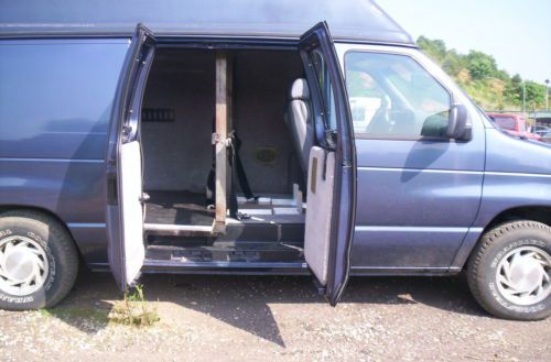 98 ECONOLINE HIGH TOP WHEEL CHAIR VAN, WILL HOLD ONE WHEEL CHAIR, IT HAS A 5.4 LITER V8 WITH 269,475 MILES VERY GOOD RUNNER LIKE NEW TIRES. POWER WINDOWS, MIRRORS, DOOR LOCKS, AND DRIVER SEAT. COLD A/C AND HOT HEAT. LEATHER SEATS AND NICE INTERIOR.