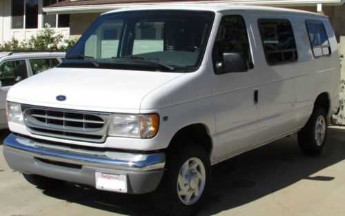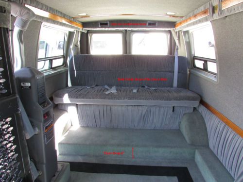 This is a 1999 Ford E-250 Van with a 5.4L V8 engine, Automatic transmission and 85,688 miles. The floor has been lowered 6" making it garage-able and much easier to get a wheelchair bound person into, with a 53" tall door opening. The wheelchair sits in the front passenger area. With the lowered floor, the lift platform is able to be longer, giving you additional room beyond the ends of the wheelchair when it is on the lift. The vehicle has front and rear air conditioning, cruise control (not working), a Pioneer DVD receiver with a rear view camera installed. It has Power Front Windows, Power Mirrors, and Power Locks with Remote Unlock/Lock key pod. It has a trailer hitch, wiring and brake control unit installed. The spark plugs, Oxygen sensors, front brake pads and front brake rotors have all been replaced within the last 5,000 miles.