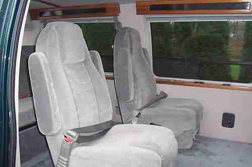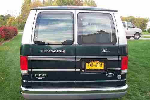 1999 Ford conversion van in very good condition. The body is rust free and has no damage. The motor is a 4.6 Triton V8. Runs great. The transmision is a 4 speed automatic with over drive. The tires are new with less then 1k miles on them. The exhaust is new from front to rear with less then 1K miles on it . The brakes are new including the roters with less then 1K miles on them. These items alone were allmost $3000. The interior is clean and includes a removable bed with storage below. Along with four captions chairs it has a fold down rear bench seat .AM-FM sterio with cass\clk\cd. All the rear windows have shades. It has custom lighting. This ford has no issues, She has less then 87k miles on her. Power windows, brakes, steering, cruise. Everything works as it should.