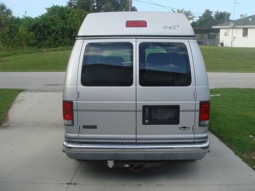 2000 Ford Mark III LE conversion van. 138,023 miles and like all the Mark III's it is loaded. Power- windows, locks, steering, brakes, mirrors and 3rd row seat is a power operated bench seat that folds into a travel bed. Tilt steering wheel, cruise control, AM/FM/Cassette & CD radio, Front & Rear A/C, Tow package with Receiver & Ball. Cloth interior 4 captains chairs and the bench rear seat. Van has ground graphics & running boards. Tow hitch with ball. Interior has indirect ceiling lights, TV, VCR, port for head set, accordion blinds for side & rear windows and easy access fuse panel. White letter tires with alloy rims.