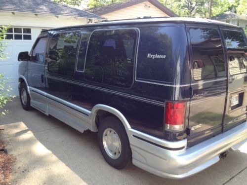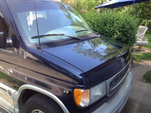 2002 Ford E-150 Explorer series conversion van is loaded with every available option that Explorer has to offer. 4 captains chairs, the two front are heated, power folding bench in back folds down into bed, rear heat and air conditioning. DVD player is less than 2 years old. Must see to appreciate. It does have a few issues with the exterior: body kit on the left side is missing a piece as seen in the pictures along with part of the running board due to a snow bank last year. Right side running board is cracked under the door. Small dent under the left tail light and is scratched on the rear bumper cover. Van runs great, air is ice cold. Overall considered good condition. This van brand new is well over 60k. You can have the same thing for a fraction of the cost new. I have always changed the oil every 3000 miles and it was just given a tune up last year.