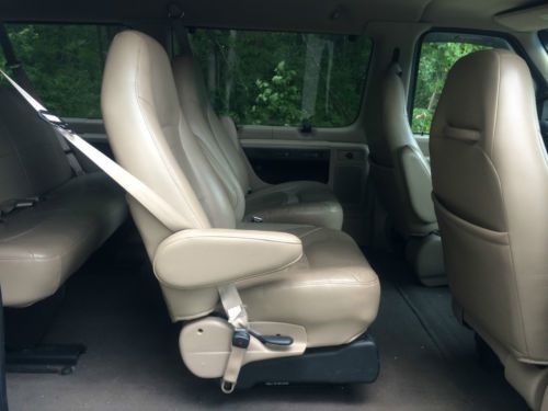 193,xxx miles 5.4L Triton V8 Leather seating for seven (2 front row bucket seats, 2 second row bucket seats, 3 third row bench seat) VCR and flip down LCD monitors (factory setup not aftermarket) $2500 Here's the deal with the van. I like to buy cars, selling not so much. It's fun to have a different car often and hunt a for a deal. I bought this vehicle on eBay last year. I paid $3050 for it November 2013. Buying cars this way means I almost never have any service records or history to them. This van is no exception. From the basic looks of it it has been maintained, interior and exterior very clean for the age and mileage of the vehicle. Does has some rust on some lower points as noted in the pictures, certainly not as bad as some I have seen or even owned. (Had a 1995 E350) All I can do is show you pictures of the van and tell you about my time with it. I've driven it around 3000 miles (it's a second vehicle), towed 1500 pounds of scrap metal, and camped in for a couple nights. When you take out the rear bench I have a perfect sized mattress that fits in there. It makes camping out very comfortable. I've changed the oil, replaced the fuel filter, and replaced the cylinder five ignition coil (had a slight hesitation). That's all I've needed to do for maintenance in the time I've had it. Drives great, shifts great. So as with any vehicle that's 12 years old it's got some quirks. 1. Wheel weights have come off the right front wheel, no problem around town but around 70+mph on the highway you get a little shake. 2. Rear door handle is missing one nut/bolt combo, still works fine. 3. Side door doesn't always unlock with the power locks, something is rattling in the door, this was like it when I bought the van. 4. Outside temp / compass display (overhead) is not working. The rest is evident with the pictures, a couple dents in the rear bumper, the small sections of rust, and the tiny split in the driver's side front seat. |