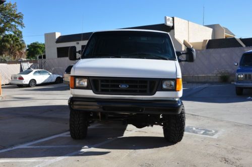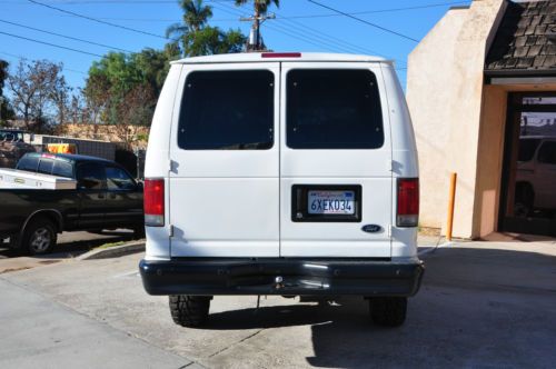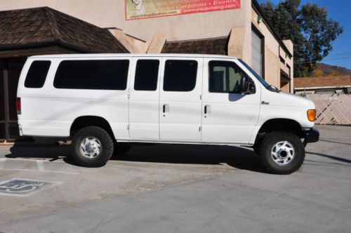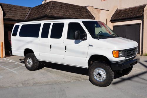 2004 Ford Diesel Quigley 4x4 Passenger Van; Seats for 12 plus small rear cargo area; Perfect for hauling your friends and toys to the desert or to your favorite hunting lodge; This truck has had an extensive amount of work done in the past year and it runs and drives like a dream; 6.0 litre fuel injected diesel engine; 145,000 miles; New 5R110W 6 speed automatic transmission with High performance "Stallion" torque converter; Dual side barn doors with opening windows; Dual rear windows with opening windows; Improvements include Bulletproof Diesel EGR and Oil Coolers (cost $5500 search bulletproofdiesel); Rebuilt Turbo charger; NEW water pump; New clutch fan; NEW power steering pump; NEW Air conditioning compressor; NEW Air conditioning condenser; NEW air conditioning rear evaporator; ( truck has front and rear heat and air conditioning); NEW 4x4 shifter; 4x4 installation was completed by the Quigley motor company when new; NEW front driveshaft; Complete NEW brake job (rotors pads calipers drums shoes hardware and wheel cylinders) NEW tires ( Khumo 265/75/16R mud tires) NEW battery; NEW wheel alignment; NEW front sway bar bushings; NEW telescoping and fold back towing mirrors; NEW windshield; NEW paint job; Rear step bumper with built in ball hitch; Manual door locks and windows; There are some minor flaws in the cloth seats and one interior panel is cracked; If you have been looking for a diesel quigley van, this is the one; Over $20,000 spent over the past year; Ready to drive and enjoy; Do not bid on this truck if you are not serious; Buyer to arrange shipping, Seller will assist; This is my daily driver and I believe it could be driven across country; I encourage anyone interested to inspect this van prior to bidding; Sold as is; Call me with any questions; Mark 619 997-9954 San Diego area;