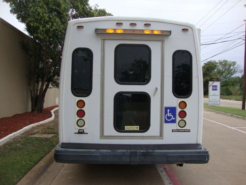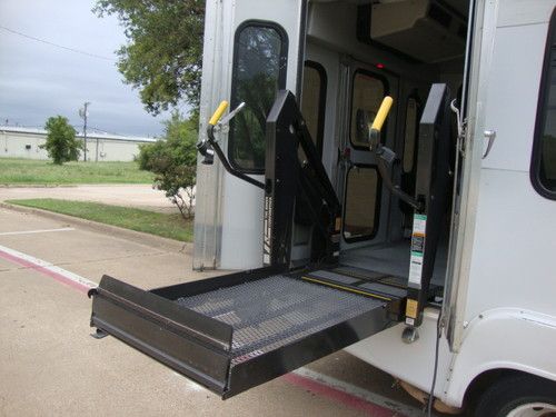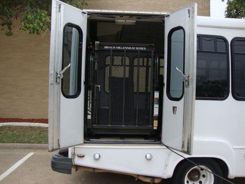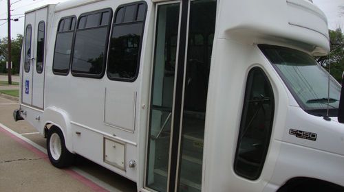 UP FOR SALE IS A RARE ITEM, ONE TEXAS OWNER RUST FREE VEHICLE, IT'S AN E-450 15 PASSANGER SHUTTLE BUS THAT YOU CAN FOLD EIGHT SEATS AND YOU WILL HAVE A THREE WHEEL CHAIR POSITION SEATER. THE LIFT IS IN A GOOD WORKING ORDER, THE POWERTRAIN STILL HAS LOTS OF LIFE AND THE TIRES ARE IN GOOD SHAPE. A/C BLOWS COLD AND ALL ELECTRONICS IS IN GOOD WORKING CONDITION. ITS ALL 100% ACCIDENT FREE WITH ALL ITS ORIGINAL PARTS AND PAINT, INCLUDING OVER 150 PAGE OF MAINTENANCE RECORDS.