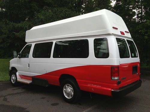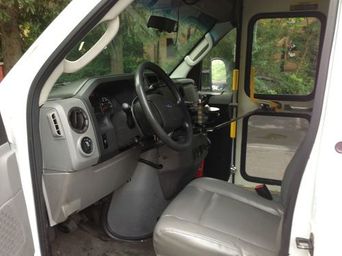 2009 Ford E-350 Super Duty Wheelchair Van, non-dully, 172K miles. It has 4 speed automatic transmission with OD V8 5.4L Gas engine 255 HP. It is in very good condition. IT HAS DUAL AIR AND HEAT AND A V8 THAT RUNS EXCELLENT. THE BUS HAS VINYL INTERIOR AND RUBBER FLOOR. IT HAS ANTILOCK BRAKES, A/C blows cold air, very clean gray interior, tire pressure monitoring. Wheelchair lift works perfect no issues. It has never been in accident, no leaks anywhere, few dents, clean title. Comes Equipped with rear A/C/Heater unit.