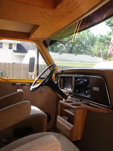 Condition is above normal with 32,860 miles, garaged for 37 years, well maintained and runs like a top. A few dings through the years. The interior is partially refinished with carpet, new highback Captains chairs and ceiling/wall/door panels. This van was bought new in 1976 in California and was involved in the Van Club Scene in Monterey, CA. It won alot of trophies in its time and featured in "Travelin' Vans" Magazine in June, 1978 but received a complete redo after that. If you are looking for a nostalgic van to trickout, this is the one for you. It is a factory Chrome Yellow in color. Shipping is not included. Will use Paypal for payment and title transfer.