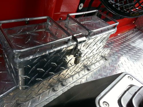 Exterior Color: 2" Tube steel, powder coat red and diamond plate