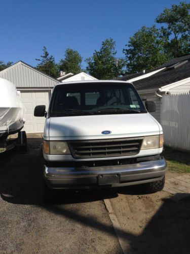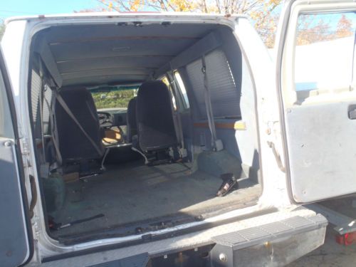 WHITE FORD E-150 VAN, 4X4 WITH POWER WINDOWS, RUNS VERY GOOD. 136,756 ORIGINAL MILES. LIGHTS, SIGNALS WINDOWS SPEEDOMETER EVERYTHING WORKS EXCEPT THE A/C HEATING BLOWER FAN. ALSO THE FUEL HOSE HAVE TO BE ADJUSTED B ECAUSE THE GAS HAS TO GO THRU A LOOP IN ORDER TO GET INTO THE TANK. CLEAR TITLE READY TO GO. NO RESERVE. I NEED TO SELL ASAP BECAUSE I NEED ROOM, THAT 'S WHY IT WILL GO TLO THE HIGHEST BIDDER .