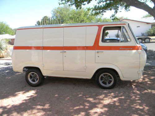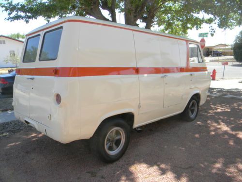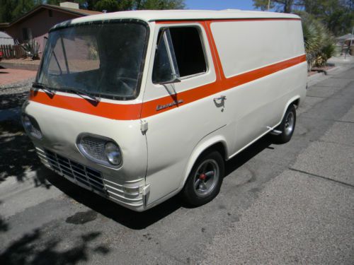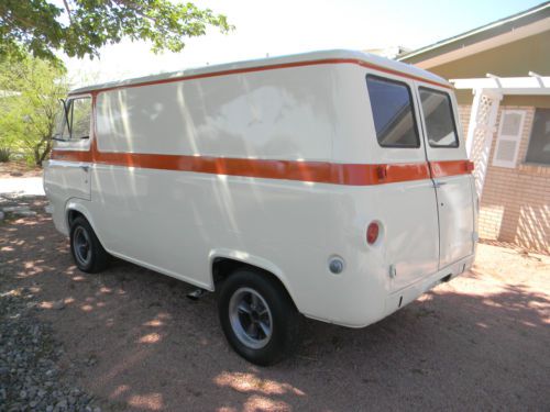 NO RESERVE !!! 1961 FORD ECONOLINE. THIS VAN IS SUPER AWESOME BECAUSE IT HAS A V8 WITH A 3 SPEED STANDARD... IT'S A SLEEPER. THE ENGINE SOUNDS SUPER GOOD AND HAS A TON OF POWER, ALL THE GEARS GO IN FINE. THE PAINT JOB LOOKS GOOD FROM 5 FEET AWAY! IT'S SHINNY BUT HAS DENTS AND SCRATCHES, BUT IT GIVES IT CHARACTER. THIS VAN HAS A TRUE DUAL EXHAUST WITH PIPES COMING OUT FROM THE SIDE. IT DOES START, IT DOES MOVE FORWARD AND BACKWARD, AND STOPS, BUT HAS NEVER BEEN ON THE HIGHWAY OR A TRIP FURTHER THAT 3 BLOCKS. ITS NOT REGISTERED OR INSURED BUT DOES HAVE A CLEAN AND CLEAR TEXAS TITLE. ENGINE HAS BEEN CLEANED AND PAINTED AND ADDED SOME CHROME A FEW MONTHS AGO. TIRES ARE IN OK SHAPE, RIMS ARE NOT NEW THEY ARE TRUE VINTAGE RIMS. THIS VAN WAS BEING FIXED TO DRIVE TO CAR SHOWS, SWAP MEETS AND TO GO GET PARTS. BEING A PRISTINE VAN WAS OUT OF THE PICTURE, IT'S NOT A PERFECT LOOKING SHOW QUALITY PAINT JOB!!!!! WINDSHIELD HAS A CRACK, FLOORS ARE SUPER SOLID, EXCEPT ON THE PASSENGER FLOORS "SEE PICTURE," THE GRILL WAS RE-CHROMED AND BUMPER WERE FIXED AND PAINTED BLACK BUT NOT INSTALLED. THE TAIL LIGHTS AND FRONT BLINKER LENSES ARE NEW AND THE HEADLIGHT BEZELS ARE NEW AS WELL. LIGHTS WORK, TURN SIGNALS WORK AND SOME GAUGES WORK. WIPERS WORK AND ALSO THE ORIGINAL HEATER BOX BLOWS, THIS VAN IS STILL A PROJECT... IF YOU DON'T KNOW HOW TO CHANGE YOUR OWN OIL OR A FLAT TIRES THIS VAN OR ANY CLASSIC IS NOT FOR YOU .. SORRY BUT I DON'T WANT THIS COOL VAN IN THE WRONG HANDS =) THIS VAN WAS IN DRY EL PASO, TX ALL OF HER LIFE AND HAS BEEN SITTING FOR SOME TIME . PLEASE LOOK AT ALL PICTURES IF YOU HAVE ANY QUESTIONS OR CONCERNS PLEASE ASK DON'T ASSUME AND KEEP IT SAFE!!!! I WILL ANSWER ALL QUESTIONS TO THE BEST OF MY KNOWLEDGE. THIS VAN IS SOLD AS IS WHERE IS WITH NO WARRANTIES OF ANY KIND OR PROMISES. YOU GET WHAT YOU SEE AND THAT'S IT. BUYER IS RESPONSIBLE FOR SHIPPING AND TRANSPORT FEES. YOU ARE WELCOME TO COME SEE THE CAR IN PERSON OR SEND AN EBAY INSPECTOR TO CHECK IT OUT. ANY QUESTIONS CONTACT ME VIA EBAY MAIL OR CALL ME TO MY CELL 915-873-2472 TRUCK IS LOCATED IN LAS CRUCES NM 88011. THERE IS A $500 NON-REFUNDABLE DEPOSIT OWED 24 HRS AFTER AUCTION ENDS. I WILL HELP AS MUCH AS I CAN TO COORDINATE THINGS WITH TRANSPORT SERVICE OR YOU IF YOUR COMING. THANKS HAVE A NICE DAY
