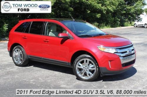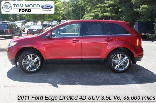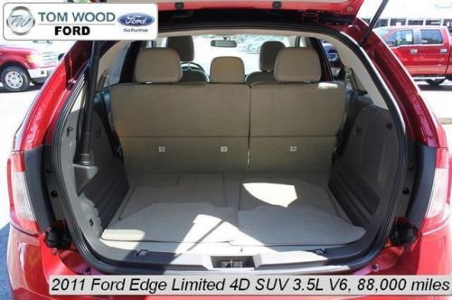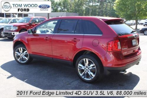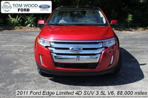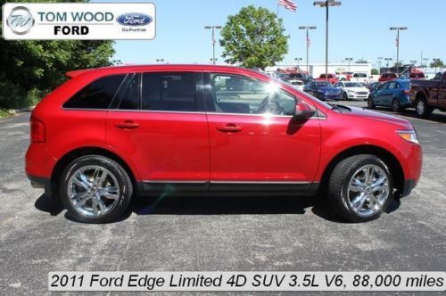 Edge Limited, 4D Sport Utility, 3.5L V6 Ti-VCT, Automatic, FWD, Red, 12 Speakers, Brake assist, Carfax 1-Owner, Carfax Clean No Accident Vehicle, Dual front impact airbags, Dual front side impact airbags, Electronic Stability Control, Four wheel independent suspension, Front anti-roll bar, Fully automatic headlights, Leather-Trimmed Heated Bucket Seats, Local Trade, Low tire pressure warning, Microsoft SYNC, MP3 decoder, Occupant sensing airbag, Overhead airbag, Rear anti-roll bar, Split folding rear seat, Sunroof, and Traction control.