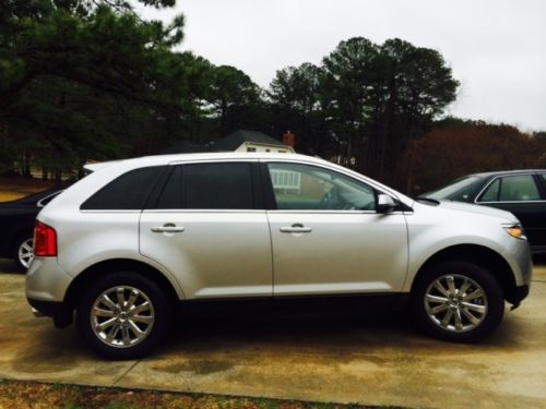 Beautiful brand new Ford Edge with only 13k miles, still under warranty. Limited Edition, has all options. Color is a SILVER with black interior. Perfect Condition. All Wheel Drive!!!! Call Tanya 404-993-3340 or Eddie 770-309-1581 Vehicle Description Back Up Camera,Satellite Radio,MP3 Player,Auxiliary Audio Input,Anti-Theft Device(s),Keyless Entry System,Side Air Bag System,Multi-Function Steering Wheel,Airbag Deactivation,Passenger Seat Height Adjust,Ambient Light Package,Memory Mirrors,Air Conditioning,Vanity Mirrors,Rear Power Seats,CD Player in Dash,Vehicle Stability Assist,Tire Pressure Monitor,Multifunction Display,EBD Electronic Brake Dist,EBA Emergency Brake Asst,Rear Window Wiper,AM/FM Radio,RSC Roll Stability Control,Child Safety Locks,Traction Control System,Memory Seating,Auto Express Down Window,SCV - Speed Compensated Volume,Anti Theft/Security System,Dual Air Bags,Universal Garage Door Opener,Auto-Dimming Mirrors,Split Bench Seats,Power Steering,Power Door Locks,Power Windows,Tachometer,Cruise Control,Reclining Seats,Power Passenger Seat,Floor Mats,Power Lumbar Seat(s),Compass,Rear Spoiler,Adjustable Head Rests,Bucket Seats,Trip Computer,Overhead Console,3 Point Seatbelts,Cargo Light,Auto Headlight Delay,Folding Rear Seats,Car Phone,Power Drivers Seat,Center Console,Heated Outside Mirror(s),Rear Center Armrest,Power Lumbar Driver Seat,Privacy Glass,Power Mirrors,Heated Drivers Seat,Heated Passenger Seat,Color Coded Mirrors,Rear Window Defroster,Small Size Spare Tire,Reading Light(s),Power Outlet(s),Leather Upholstery,3 Point Rear Seatbelts,Intermittent Wipers,Anti-Lock Braking System (ABS),Beverage Holder (s),Sync |