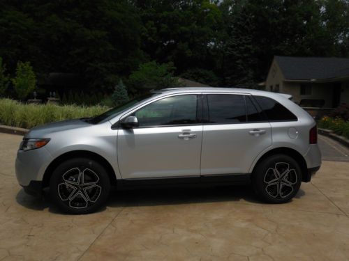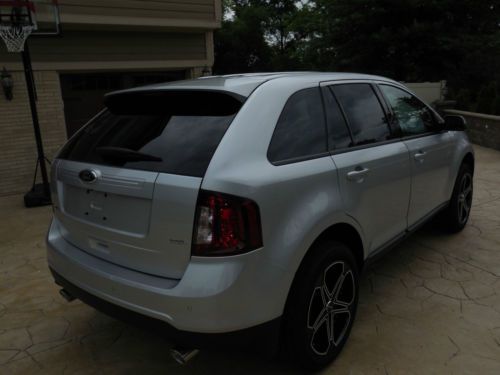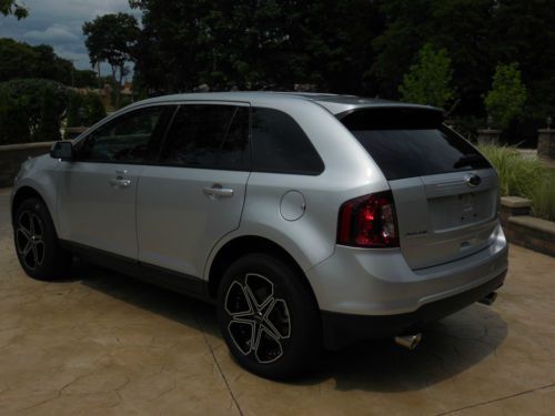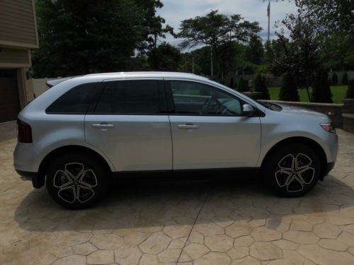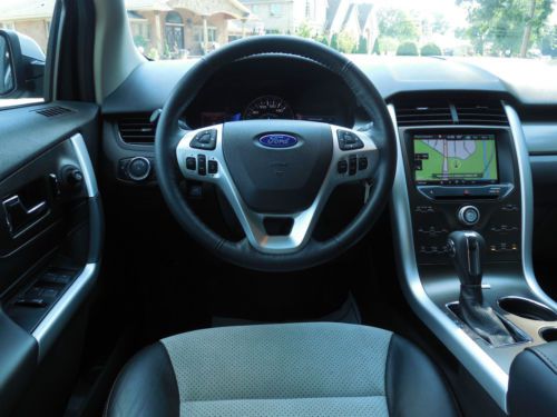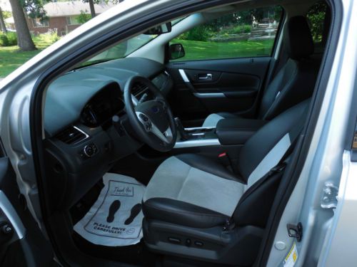 AN IMPRESSIVE 2013 FORD EDGE SEL, LIKE NEW, SHARP WITH SILVER COLOR EXTERIOR MATCHED WITH TWO TONE BLACK/GRAY LEATHER INTERIOR... BARLEY DRIVEN ONLY 2285 MILES LIKE NEW ... VEHICLE DRIVES/LOOKS LIKE NEW..3.5 LITER,,, V6 SPEED AUTOMATIC TRANSMISSION. LUXURY PACKAGE.. REMOTE KEYLESS ENTRY,,, MY FORD TOUCH SYSTEM, NAVIGATION SYSTEM,,, TOUCH SCREEN,,, BACKUP CAMERA,,, REAR BUMPER SENSORS,,, POWER WINDOWS,,, POWER DOOR LOCKS,,, FRONT WHEEL DRIVE,,, POWER STEERING,,, 4-WHEEL DISC BRAKES,,, TIRES - FRONT AND REAR PERFORMANCE,,, SPARE TIRE,,, POWER EXTERIOR DRIVER AND PASSANGER MIRRORS,,, INTERMITTENT WIPERS WITH VARIABLE SPEED,,, SYNC SYSTEM,,, BLUE TOOTH,,, AM/FM STEREO,,, SATELITE RADIO,,, CD PLAYER,,, MP3 PLAYER,,, AUXILLIARY AUDIO INPUT,,, RDS SYSTEM,,, INTERIOR AMBIENT LIGHTS,,, STEERING WHEEL AUDIO CONTROL,,, POWER HEATED LEATHER SEATS,,, BUCKET SEATS,,, FLOOR MATS,,, ADJUSTABLE STEERING WHEEL,,, CRUISE CONTROL,,, ALARM,,, VEHICLE ANTI-THEFT SYSTEM,,, DRIVER/PASSANGER A/C/HEAT CONTROL,,, REAR DEFROST,,, AUXILLIARY Pwr OUTLET,,, ELECTROCHROMIC REAR VIEW MIRROR,,, DRIVER AND PASSANGER VANITY MIRROR,,, FRONT READING LAMPS,,, FUG LIGHTS,,, 4-WHEEL ABS,,, TRACTION CONTROL,,, ELECTRONIC STABILITY CONTROL,,, PASSANGER AIR BAG ON/OFF SWITCH,,, CHILD SAFTY LOCKS,,, 20" MACHINED PREMIUM PAINTED ALUMINUM WHEELS,,, TIRE PRESSURE MONITORING SYSTEM