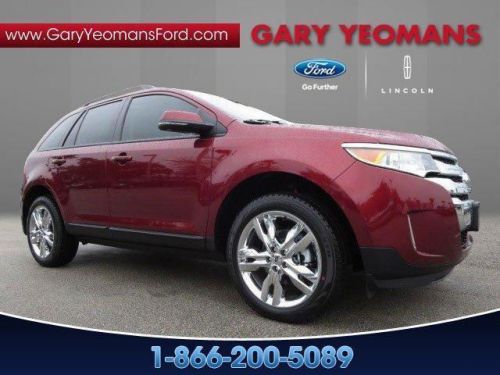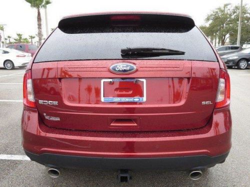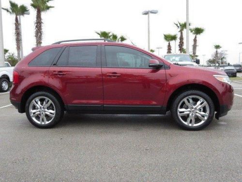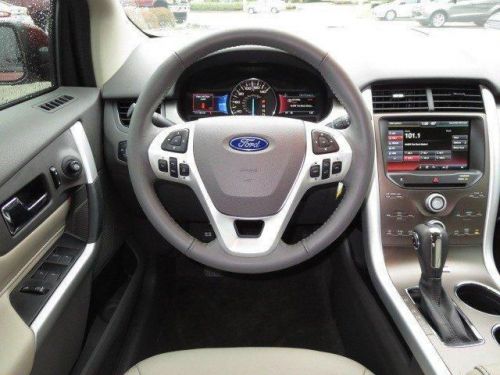 Driven by your choice of 3 smart engines, the Ford Edge is one amazingly capable crossover. Its standard 3.5L Ti-VCT V6 delivers unsurpassed V6 hwy mileage of up to 27 mpg. The remarkable 2.0L EcoBoost engine gives you plenty of low-end torque for acceleration and passing, plus fuel efficiency. And the 305-horsepower 3.7L Ti-VCT V6 on Edge Sport is the most powerful V6 in its class. Edge makes it easy for you to stay connected to calls, music and more with both hands on the wheel. A new SEL Appearance Package adds flair including eye-catching 20 inch wheels. Available in all-wheel drive or front-wheel drive, the Edge can help you maintain your cruising distance, change lanes and back out of parking spaces. The turbocharged, direct-injection 2.0L EcoBoost I-4 engine with 6-speed automatic transmission, helps the Edge deliver up to 30 mpg hwy and travel over 500 miles per tank. The Edges new active grille shutters, included with the EcoBoost engine, help make itself even more aerodynamic and fuel efficient. The 3.7L Ti-VCT V6 engine inside Edge Sport provides the driver with 305 horsepower, 280 lb.-ft of torque, plus 26 mpg hwy. Racing-style paddle shifters give you ultimate control of its 6-speed SelectShift Automatic transmission. Outside, aggressive front and rear fascias combine with a bold black grille, unique headlamp treatments, oval-shaped chrome exhaust tips and jaw-dropping 22 inch aluminum wheels to give Edge Sport the look that backs it all up. The Limited model is just one example of the interior luxury experienced in the new Edge. The Edge Limited has luxurious leather-trimmed and heated front seats featuring 10-way power adjustments. With your seat just the way you like it, you can adjust the standard title/telescoping steering column to match your driving style too. Graceful lines effortlessly guide your eyes along the dash and down the flow-through center console, merging into a singularly inviting interface.