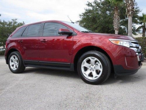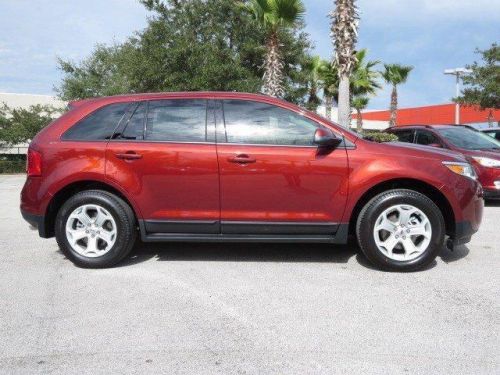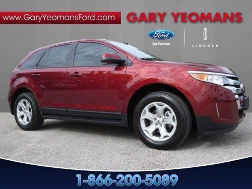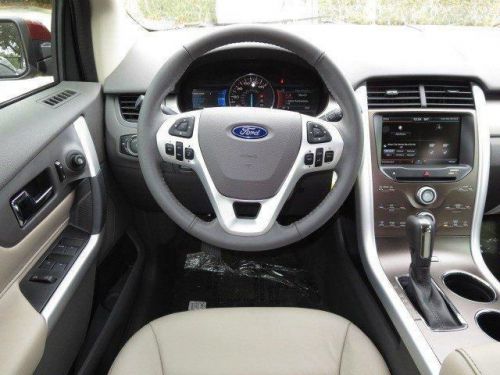 Driven by your choice of 3 smart engines, the Ford Edge is one amazingly capable crossover. Its standard 3.5L Ti-VCT V6 delivers unsurpassed V6 hwy mileage of up to 27 mpg. The remarkable 2.0L EcoBoost engine gives you plenty of low-end torque for acceleration and passing, plus fuel efficiency. And the 305-horsepower 3.7L Ti-VCT V6 on Edge Sport is the most powerful V6 in its class. Edge makes it easy for you to stay connected to calls, music and more with both hands on the wheel. A new SEL Appearance Package adds flair including eye-catching 20 inch wheels. Available in all-wheel drive or front-wheel drive, the Edge can help you maintain your cruising distance, change lanes and back out of parking spaces. The turbocharged, direct-injection 2.0L EcoBoost I-4 engine with 6-speed automatic transmission, helps the Edge deliver up to 30 mpg hwy and travel over 500 miles per tank. The Edges new active grille shutters, included with the EcoBoost engine, help make itself even more aerodynamic and fuel efficient. The 3.7L Ti-VCT V6 engine inside Edge Sport provides the driver with 305 horsepower, 280 lb.-ft of torque, plus 26 mpg hwy. Racing-style paddle shifters give you ultimate control of its 6-speed SelectShift Automatic transmission. Outside, aggressive front and rear fascias combine with a bold black grille, unique headlamp treatments, oval-shaped chrome exhaust tips and jaw-dropping 22 inch aluminum wheels to give Edge Sport the look that backs it all up. The Limited model is just one example of the interior luxury experienced in the new Edge. The Edge Limited has luxurious leather-trimmed and heated front seats featuring 10-way power adjustments. With your seat just the way you like it, you can adjust the standard title/telescoping steering column to match your driving style too. Graceful lines effortlessly guide your eyes along the dash and down the flow-through center console, merging into a singularly inviting interface.