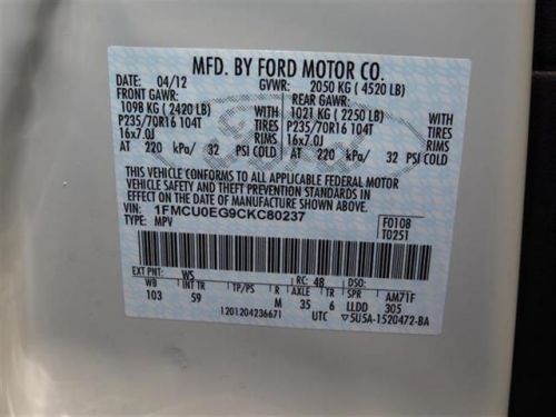 VIN (Vehicle Identification Number): 1FMCU0EG9CKC80237