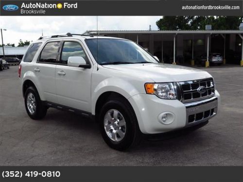 AutoNation Ford Brooksville is honored to present a wonderful example of pure vehicle design... this 2012 Ford Escape Limited only has 23,444 miles on it and could potentially be the vehicle of your dreams! Rest assured with your purchase of this pre-owned Escape Limited. Because a CARFAX BuyBack Guarantee is included, you have built-in peace of mind to drive off the lot confidently. This well-maintained Ford Escape Limited comes complete with a CARFAX one-owner history report. Sure, every Certified Pre-Owned Ford is rigorously inspected. However, a Certified Pre-Owned Ford Escape Limited from AutoNation Ford Brooksville offers complete peace of mind. Gone are the days of SUVs being the size of a tank and handling like one. This Ford Escape is a perfect example of how SUVs have evolved into vehicles that are as refined as they are rugged. This vehicle has had only 23,444 miles put on it's odometer. That amount of mileage makes this vehicle incomparable to the other vehicles on this market and is ready for you to come and see at AutoNation Ford Brooksville. If not for a few miles on the odometer you would be hard-pressed to know this 2012 Ford Escape is a pre-owned vehicle. When all factors are equal, choose a vehicle equipped with a factory warranty like this gently driven gem. This Escape Limited has a showroom quality finish with no dents or scratches visible. This Ford includes: 302A EQUIPMENT GROUP ORDER CODE Multi-Zone A/C A/C Back-Up Camera Sun/Moon Roof Sun/Moonroof MP3 Player CD Player Climate Control Rear Parking Aid Universal Garage Door Opener WHITE SUEDE CHARCOAL BLACK, LEATHER BUCKET SEATS Leather Seats Bucket Seats 3.0L V6 FLEX FUEL ENGINE Flex Fuel Capability V6 Cylinder Engine *Note - For third party subscriptions or services, please contact the dealer for more information.* More information about the 2012 Ford Escape: The 2012 Ford Escape is one of the most affordable and economical small SUVs, and i Please call888-490-6841, Internet Sales Manager, for special Pricing. No combined discounts or sales. Good Credit, Bad Credit, No Credit, No Problem!