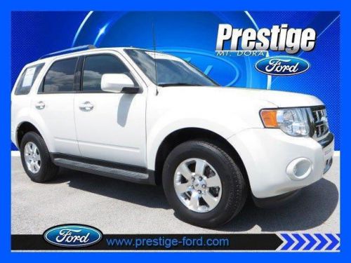 FUEL EFFICIENT 28 MPG Hwy/21 MPG City! Limited trim. Heated Leather Seats, Satellite Radio, Aluminum Wheels, Head Airbag. SEE MORE!======: AutoCheck One Owner ======KEY FEATURES ON THIS FORD ESCAPE INCLUDE: KEY FEATURES ON THIS FORD ESCAPE INCLUDE: Leather Seats, Heated Driver Seat, Satellite Radio MP3 Player, Onboard Communications System, Aluminum Wheels, Keyless Entry, Privacy Glass, Steering Wheel Controls, Child Safety Locks. ======FORD ESCAPE: BEST IN CLASS: Best in Class Combined Fuel Economy vs. Jeep Liberty, Toyota RAV4, and Honda CR-V. With over 29 cubic feet of Cargo Volume (behind rear seat), the Escape will hold 5 carry-on suitcases and 2 sets of golf clubs. Fold down the rear seat and Cargo Volume expands to over 66 cu/ft. That is 10 carry-on suitcases and 4 sets of clubs. Great Gas Mileage: 28 MPG Hwy. ======WHY BUY FROM US: Welcome to Prestige Ford! Located in Mt Dora, FL, Prestige Ford is proud to be one of the premier dealerships in the area. From the moment you walk into our showroom, you'll know our commitment to Customer Service is second to none. We strive to make your experience with Prestige Ford a good one for the life of your vehicle. Whether you need to Purchase, Finance, or Service a New or Pre-Owned Ford, you've come to the right place. Call 888-416-4260 for your No-Obligation Internet Price Quote. Pricing analysis performed on 6/10/2014. Fuel economy calculations based on original manufacturer data for trim engine configuration. Please confirm the accuracy of the included equipment by calling us prior to purchase. Contact the Internet Department for more information at 888-416-4260