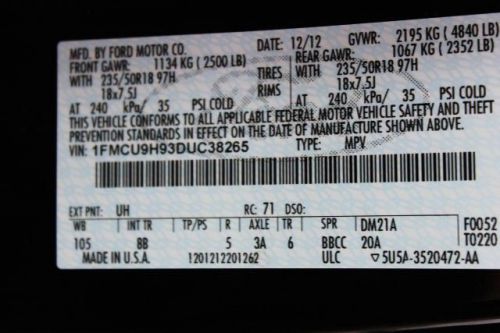 VIN (Vehicle Identification Number): 1FMCU9H93DUC38265