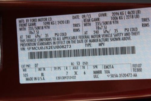 VIN (Vehicle Identification Number): 1FMCU0JX2EUB08273