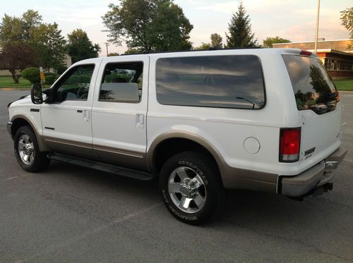 This is an extra nice looking Ford Excursion for the year. Paint, body, and interior are in above average condition. The undercarriage is clean, but not as clean as a Texas truck. It spent most of its life in southern PA/Maryland, and has only been in Buffalo one season. Oil pan, rear main seal, valve covers, and differential are bone dry. Has 07 lariat grille, lights, and wheels NOT from being in an accident, but because I wanted to make the truck look nicer. All electronics are in good working order. AC is cold. Has custom air intake and exhaust (gets around 22mpg hwy). This excursion runs and drives like a truck with a quarter of the mileage.
