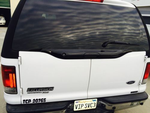 SELLING FORD EXCURSION STRETCH LIMOUSINE, BUILT BY KRYSTAL BUILDERS. THIS LIMOUSINE LOOKS EXCELLENT, INSIDE & OUTSIDE, 14 PASSENGERS LIMO, BRAND NEW TIRES, ALL MAINTENANCE RECORDS, WHITE & BLACK EXTERIOR, GRAY INTERIOR J SEAT WITH BLACK CARPETS, REAR VIP SEATING, MIRRORED FIBER OPTIC CEILING WITH STAR GAZER COLOR WHEEL, EXTRA LARGE MIRRORED PRIVACY DIVIDER WITH STAR GAZER, FIBER OPTIC HALO LIGHTING, 2 FIBER OPTIC MINI BARS THAT INCLUDE STAR GAZER BACK DROP, 3 FLAT SCREEN COLOR MONITORS, INTERCOM BY PHONE, OVERHEAD CONTROL PANEL, AM/FM STEREO, CD/DVD PLAYER, ICE CHESTS. WE KEEP OUR LIMOUSINES INSIDE. THIS LIMOUSINE WAS USED FOR WEDDINGS AND PROMS ONLY. IF YOU HAVE ANY QUESTIONS PLEASE FEEL FREE TO CALL AT 530 701 8540. THANK YOU |