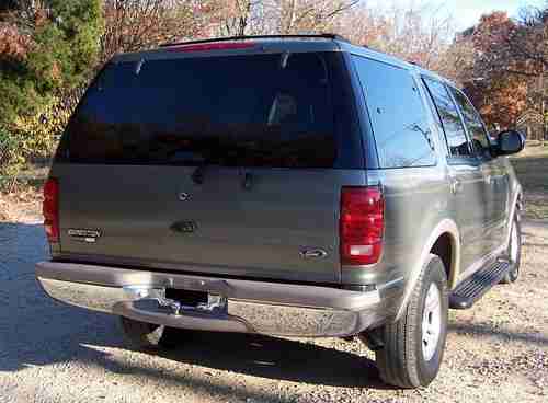 1999 FORD EXPEDITION " EDDIE BAUER EDITION" - THIS EXPEDITION RUNS AND DRIVES LIKE NEW AND NEEDS NOTHING - 5.4 LITER TRITON V/8 ENGINE - AUTOMATIC - AM/FM AUDIOPHILE STEREO WITH CASSETTE AND 6 DISC CD CHANGER - POWER SEATS - POWER WINDOWS - POWER DOOR LOCKS - CRUISE CONTROL - TILT WHEEL - POWER HEATED REAR VIEW MIRRORS - FRONT BUCKET SEATS WITH CENTER CONSOLE - REAR HEAT AND AIR - THIRD SEAT - TINTED WINDOWS - POWER REAR VENT WINDOWS - REAR WINDOW DEFOGGER - REAR WINDOW WASHER AND WIPER - HEAVY DUTY TOW PACKAGE - ALLOY WHEELS - ROOF RACK - LIGHTED RUNNING BOARDS - FOG LAMPS - ALARM - REMOTE ENTRY - DIGITAL ENTRY ............