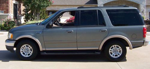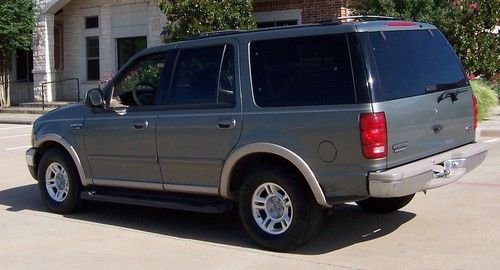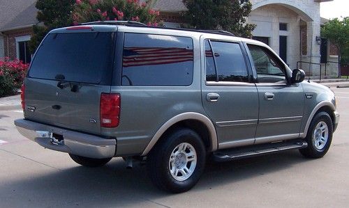 1999 FORD EXPEDITION "EDDIE BAUER" EDITION - VERY NICE RUST FREE NORTH TEXAS SUV - ELECTRONIC 4-SPEED AUTOMATIC TRANSMISSION - POWER WINDOWS - POWER DOOR LOCKS - CRUISE CONTROL - TILT WHEEL - LEATHER POWER FRONT BUCKET SEATS WITH CENTER CONSOLE - ROOF CONSOLE - FORD MACH AM/FM STEREO WITH CASSETTE AND 6 DISC CD CHANGER - ALLOY WHEELS - TINTED WINDOWS - LIGHTED VANITY MIRRORS - REMOTE ENTRY WITH DIGITAL KEYPAD AND ALARM - REAR WINDOW WIPER AND WASHER - REAR WINDOW DEFOGGER - POWER REAR WINDOW FLIP OUT VENTS - ILLUMINATED ENTRY - FRONT AND REAR HEAT AND AIR - THIRD SEAT - TINTED WINDOWS - ROOF RACK - POWER HEATED REAR VIEW MIRRORS WITH LIGHTED TURN INDICATORS - ANTI THEFT - POWER ADJUSTABLE PEDALS - LIGHTED RUNNING BOARDS - FOG LAMPS - POWER REAR VENT WINDOWS - RUNS AND DRIVES LIKE NEW....EXTRA CLEAN INSIDE AND OUT.....FREE SHIPPING UP TO 200 MILES WITH BUY IT NOW........