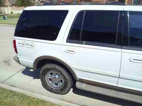 I have had this Expedition since 2001. Its been a great vehicle.. But I've decided to let her go. The drivers seat has a small hole where you slide in and out. The engine still runs strong and the transmission was rebuilt around 140,000 miles. The 4x4 has been rarely used. ** It currently is lock in 4x4 Low** Something has probably broke in the transfer case. It has new shocks and alignment. The top is showing rust and there is a spot on front left fender where paint is peeling off. It has aftermarket grill, Lights and stereo. Pioneer unit with alpine Speakers in front. It is wired for a sub. No third row seat. Driver seat is only one with wear. The carpet for front and passengers has always been covered by foxboot floormats. Sun roof works great. It gets about 16 MPG on the highway and 14 in town. New fuel pump was put last month.