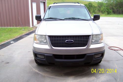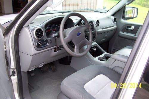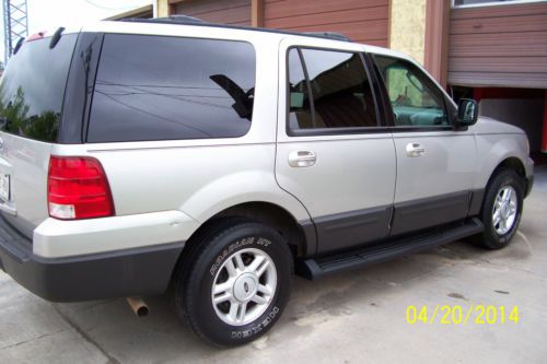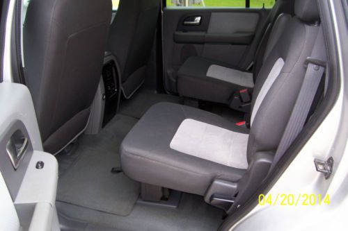 THIS IS A 2004 FORD EXPEDITION SILVER IN COLOR WITH GRAY INTERIOR. SEATING FOR SEVEN WITH CAPTAIN'S CHAIR STYLE SEATING AND POWER THIRD ROW SEATS. IT HAS A 4.6 LITER V-8 WITH AUTOMATIC TRANS. ALL POWER OPTIONS AND HEATED MIRRORS. A SIX DISC FACTORY CD AM/FM SYSTEM. REAR ENTERTAINMENT SYSTEM. TOWING PACKAGE WITH ROOF RACK AND RUNNING BOARDS. ICE COLD A/C WITH REAR AIR. NEWLY SERVICED WITH NEW WIPER BLADES AND SYSTEM CHECKS. THIS VEHICLE RUNS GREAT AND HAS 265/70R17 NEXEN ROADIAN HT TIRES WITH DESCENT TREAD ON TIRES. PLEASE SEE PICS AND ASK QUESTIONS IF YOU HAVE ANY. THERE IS MINOR DAMAGE TO BOTH REAR QUARTER PANEL AREAS. PLEASE SEE PICS. THIS VEHICLE IS DRIVEN DAILY SO MILEAGE WILL CHANGE FROM LISTING. PLEASE FEEL FREE TO COME AND SEE ITEM BEFORE AUCTION ENDS. NO WARRANTY IS IMPLIED OR GIVEN. VEHICLE IS ALSO LISTED LOCALLY SO I RESERVE RIGHTS TO END AUCTION IF VEHICLE IS NO LONGER AVAILABLE. VEHICLE ALSO HAS POWER ADJUSTABLE PEDALS. VEHICLE IS PRETTY CLEAN. SEE PICS AND ASK QUESTIONS. GREAT VEHICLE WITH LOTS OF OPTIONS FOR A GREAT DEAL. THANKS FOR LOOKING.