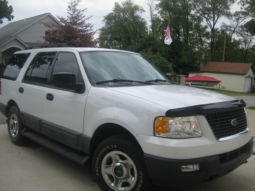 2005 FORD EXPEDITION XLT 4X4 former police SUV; purchased new and maintained by Steuben County, IN Sheriff's Department. White exterior with no dents or dings. Grey cloth front bucket seats, rear seats are leather and look brand new; no 3rd row seats. Very strong 5.4 motor, automatic with 122,503 original miles; cold A/C; CD; Power locks, windows, seats and rear window defroster. Easily pulls trailers or boats. SAFE, MODERN transportation. Runs and drives like a new one. This vehicle is also for sale locally. I reserve the right to end this listing early if this vehicle sells. Excellent buy $6,500. Angola, IN