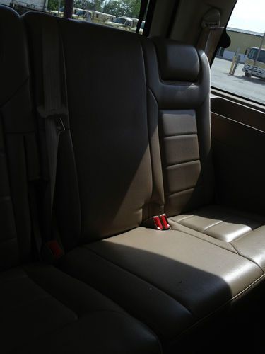 This vehicle has a problem with the engine. It is not running. It will need to be towed. I would assume you will need to rebuild or get a new engine for it. It has leather interior with issues on the driver seat from getting in and out of it. (I put the seat cover over it) There was also a pamphlet that adhered to the seat behind the drivers seat.(I think it can be cleaned.) It has some paint bubbling on the rear hatch. It has rust on both of the steps to get into the vehicle. It has not been cleaned. It has an after market Sony Stereo.