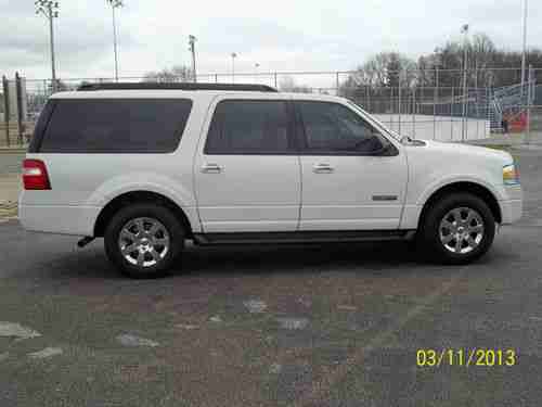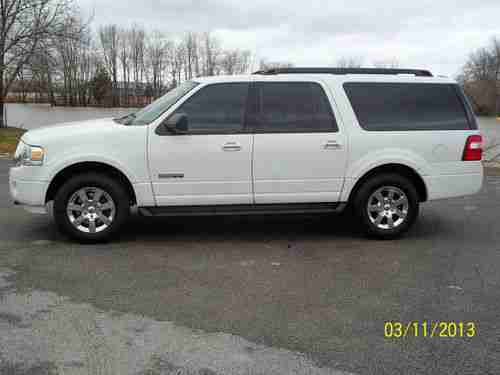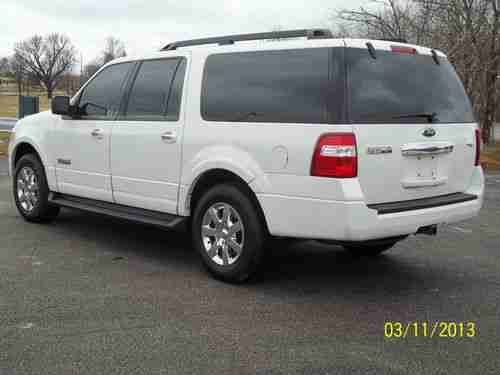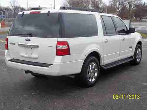 You are looking at a nice 2008 Ford Expedition EL. This is a 4wd with the popular 5.4L engine and smooth shifting automatic transmission. The shiny white paint is in very good condition with only minimal wear. The tan cloth interior is in good shape too. Driver's seat does have a couple of small cigarette type burns that you will see in the pics. This truck also has the drop down dvd for rear passengers. It seats 8 people, and has power folding third row seating. You won't be disappointed with this great SUV. The whole family will love it. One of our employees is currently using it as a demo, so mileage will vary some.
