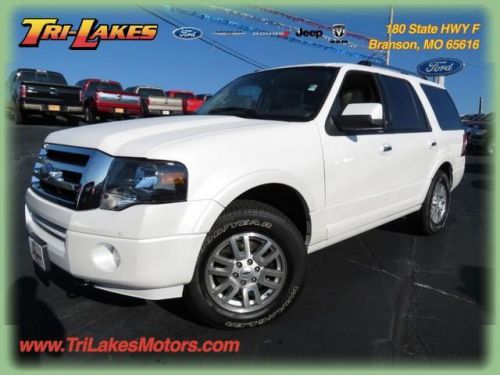 Leather Navigation touch screen radio,third row seating Contact us about this beautiful vehicle. We would love to give you a quote on this vehicle including the specialized incentives you may be eligible for. This 2014 Ford Expedition Limited will make you a very happy camper, We also will throw in your first oil change for free and we have NO DOC fees. Find this beauty at Tri-Lakes Motors in Branson. Just a short drive from Springfield and Harrison. Our definition of short is around 30 mins. No FEES and a downright great place to do your business. WE will earn your business. Give us a call and we will do a one of a kind walk around on this vehicle. You can watch this video from the comfort of your home or the convenience of your phone. Call Cory 888-839-7165 with any questions and to make sure this vehicle or the terms are still AVAILABLE. Tri-Lakes is a Franchise dealer for Ford, Chrysler, Dodge, Jeep, and Ram. This means we try to make sure our pre-owned vehicles in turn are in like new car shape and quality. Offer is not valid with any other offer. We take trade-ins and can finance almost anyone through our 14 lenders.