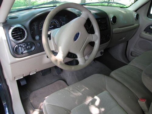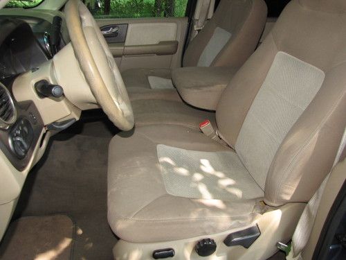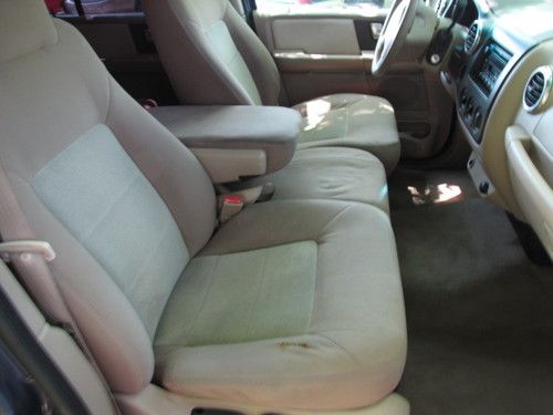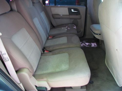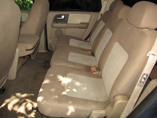 2003 Ford Expedition XLT, blue with tan cloth interior. 148k miles. Hard to find 4.6l v8 4x4 , is powerful yet easier on gas than the 5.4. The body looks very nice, no major dents or dings. Interior is clean, front passenger seat has a small tear. It has Third row seat, special option, can seat 9 adults (3 rows of 3). It drives well, suspension and steering are tight. All power features are working except the drivers window intermittently doesn't respond to the switch. The motor and trans are 100% functional, feels great to drive. Matching 4 tires with 70% tread life remaining.