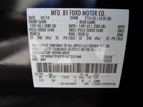 VIN (Vehicle Identification Number): 1FM5K7F87EGC33146